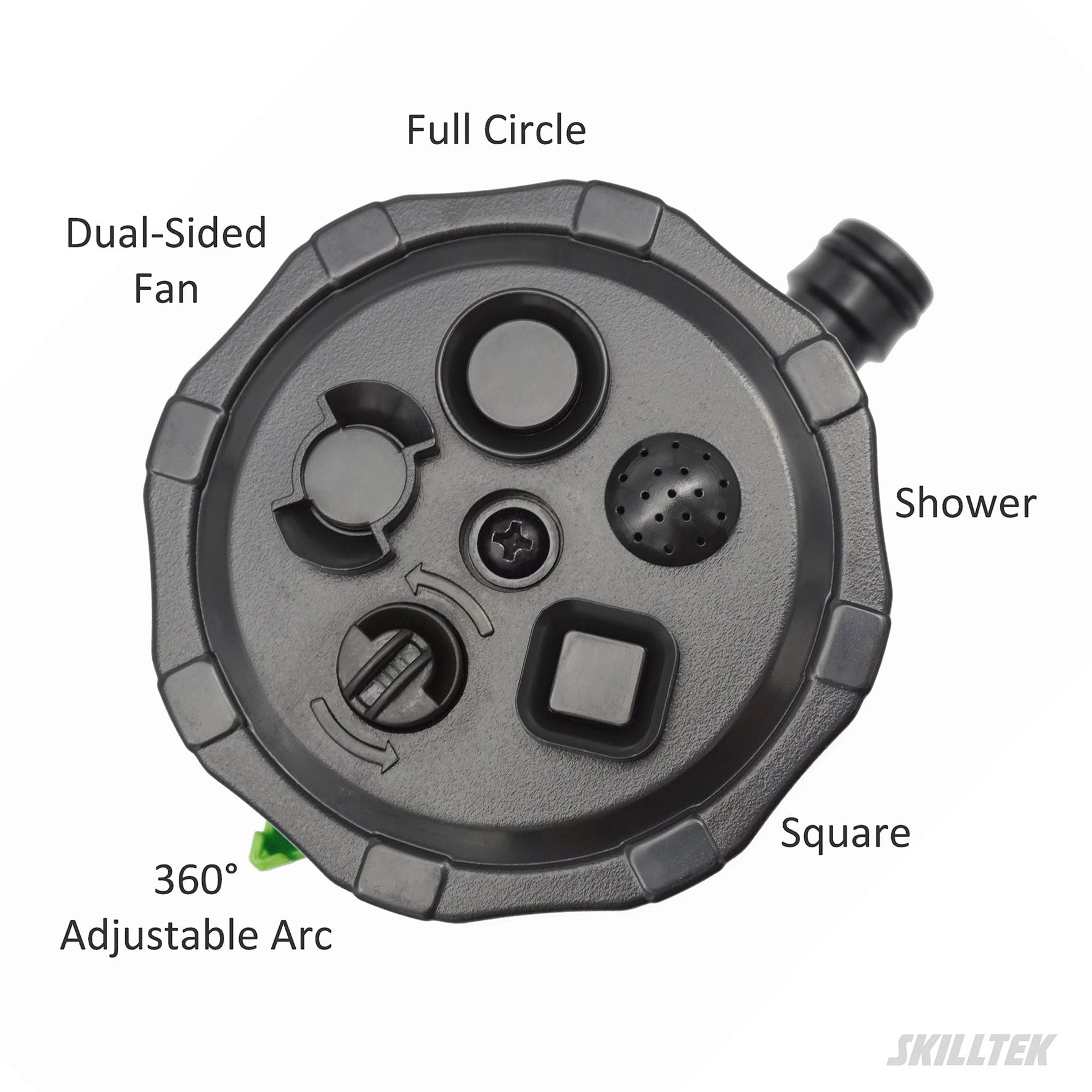 The Five Pattern Sprinkler with Spike is a versatile and user-friendly watering solution designed to meet the diverse needs of home gardeners and landscaping professionals. Featuring five distinct spray patterns—including shower, square, full circle, dual-sided fan, and a unique 360° adjustable half-circle pattern—this sprinkler adapts easily to different lawn shapes, flower beds, or garden zones. Unlike many models on the market, the 360° adjustable arc setting provides full directional flexibility, allowing users to fine-tune water coverage in irregular or corner areas. Built with an ABS body and an integrated spike, there’s no need to attach a separate base, which simplifies setup and improves durability. Its intuitive top dial makes spray pattern selection quick and effortless.